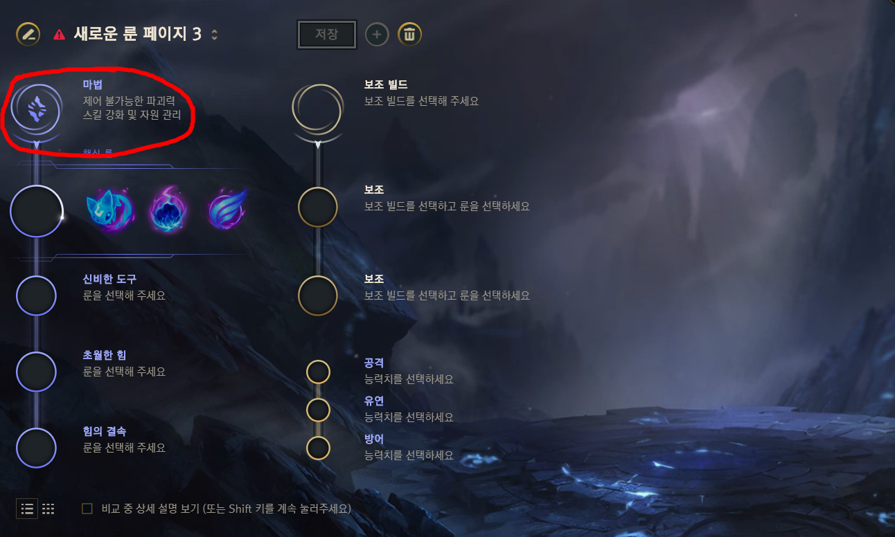 - 3 - 주 빌드의 보조 룬으로써 3가지 룬 중 하나를 선택해야 합니다.