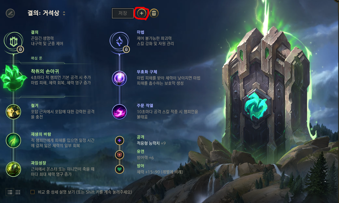 10레벨을 달성 할 경우, 새로운 룬 페이지를 만들 수 있는데, 원하는 룬을 상세하게 선택이 가능합니다.