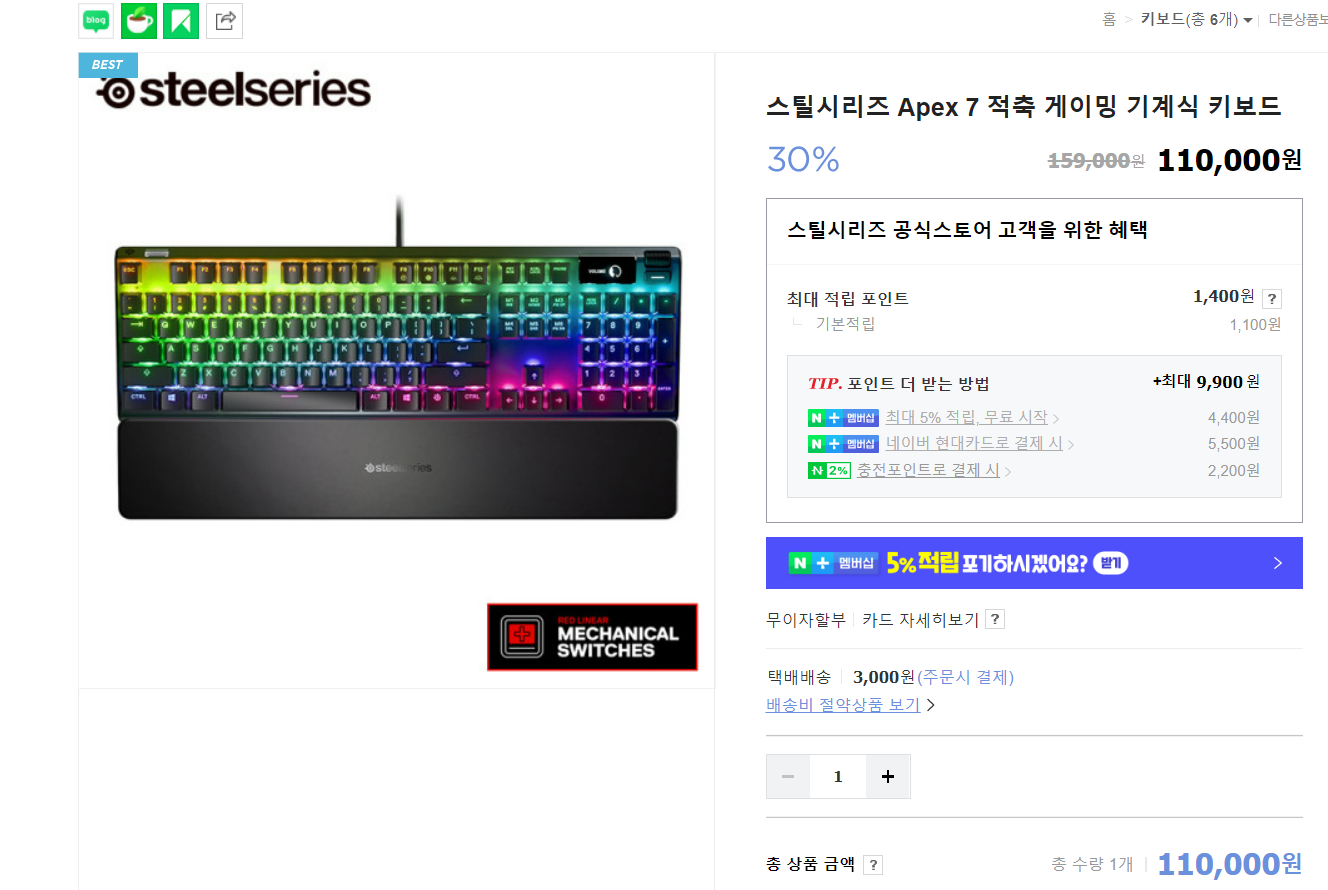 수준 높은 게이밍 키보드를 구매해 오래 사용하고 싶다면 스틸 시리즈 APEX 7 제품도 한 번 쯤 고려해보는 것을 추천드립니다.