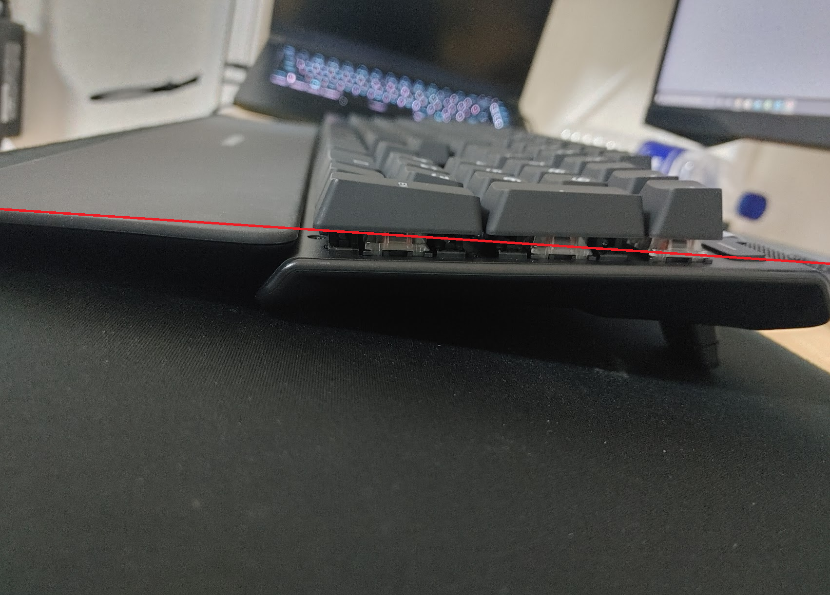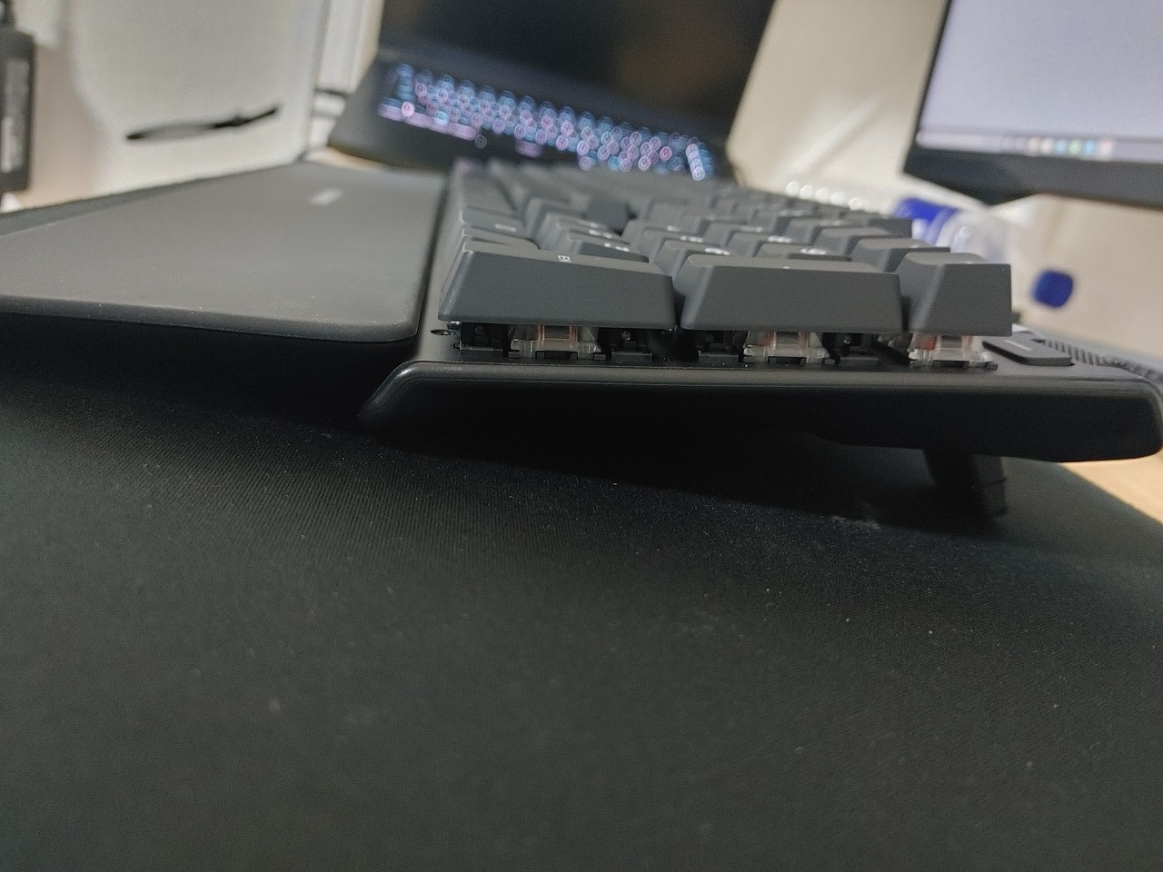 팜 레스트의 사용감은 굉장히 놀라웠습니다. 팜 레스트의 질감이 굉장히 부드럽고 편안했으며, 팜레스트의 각도 또한 굉장히 자연스러워 전체적으로 매우 만족스러웠습니다.