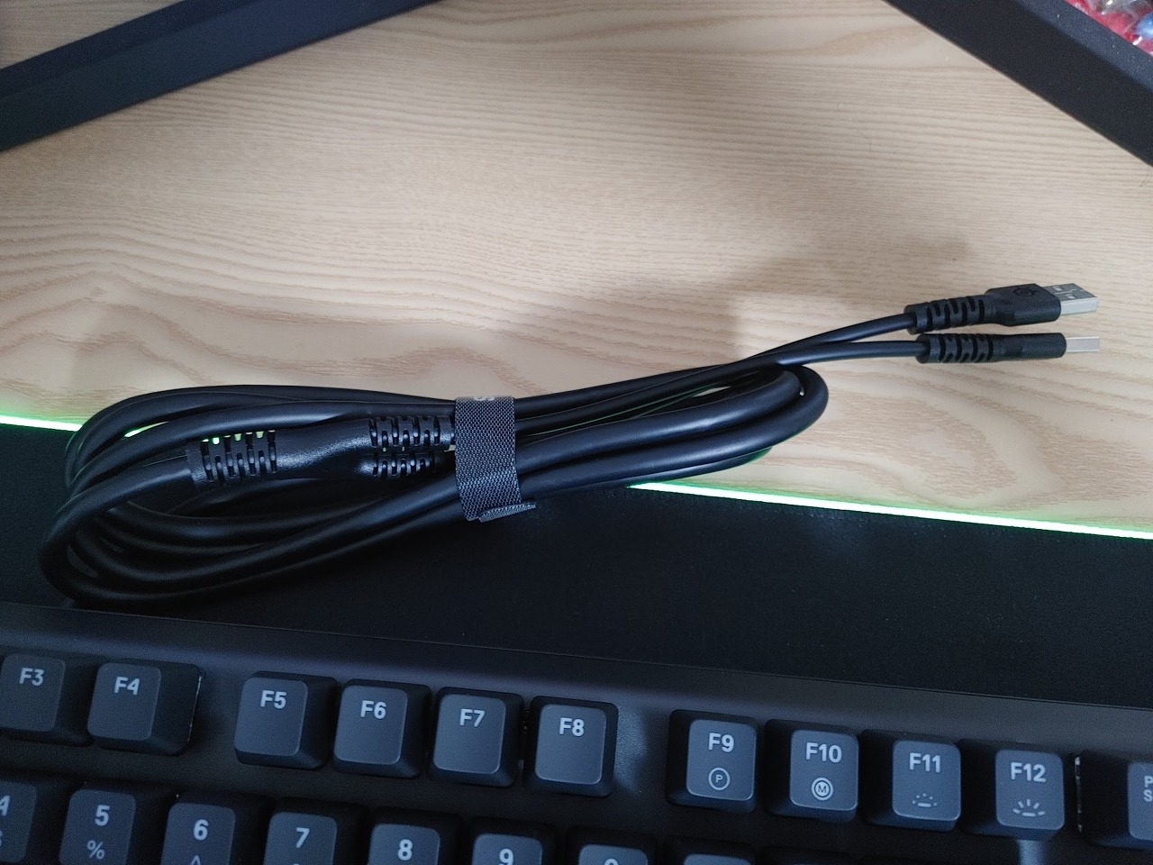 마지막으로 아쉬웠던 점은 바로 고무 케이블을 사용하고 있었습니다. 사실 요즘 5만원대 기계식 키보드도 패브릭 재질의 케이블을 제공해주는 경우가 많은데 15만원이 넘는 가격임에도 불구하고 고무 케이블을 사용하고 있습니다.
