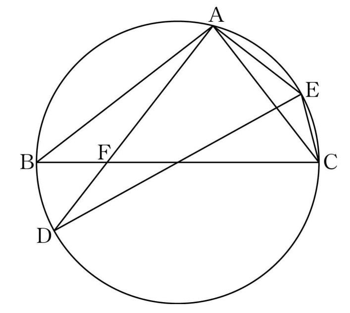 삼각형 AED와 ABC는 둘 다 한 변이 지름인 삼각형이므로 직각삼각형입니다. (원주각 중심각 관계)