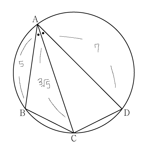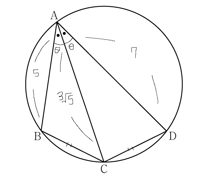 두 각이 같다는 점과 BC, CD를 제외한 모든 길이를 문제에서 알려주었기 때문에 양쪽에서 코사인 법칙을 사용하시면 됩니다.
