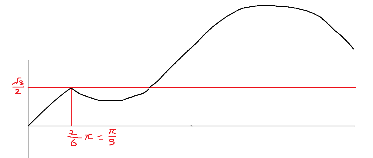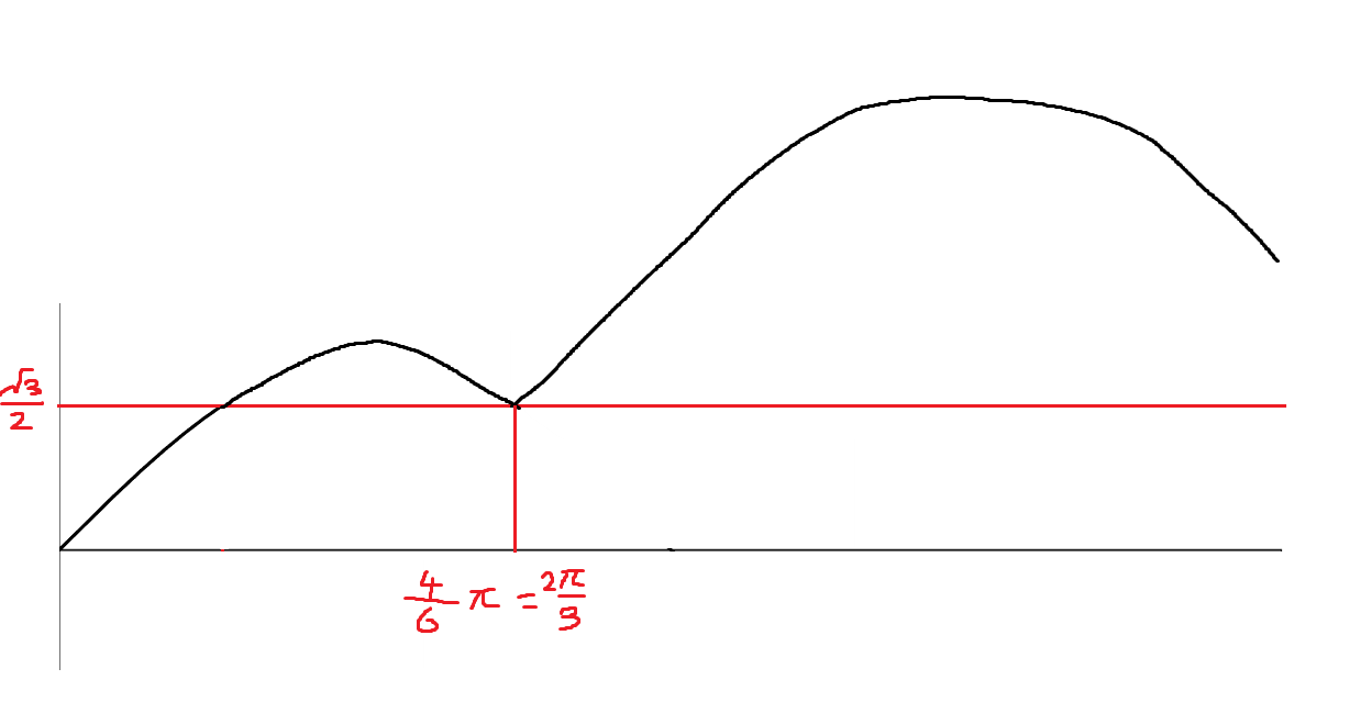 이와 같이 2분의 1에 대해 대칭으로 함수를 그린 이후 6분의 π보다 큰 원래 sin함수 부분을 삭제해주면 되겠죠?