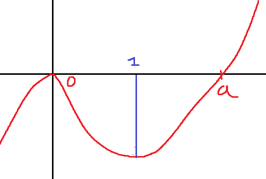 즉 위의 함수의 극댓값 혹은 극솟값의 x좌표가 1이 되어야하는데 극댓값의 x좌표는 0이므로 결국 극솟값의 x좌표가 1이어야합니다.