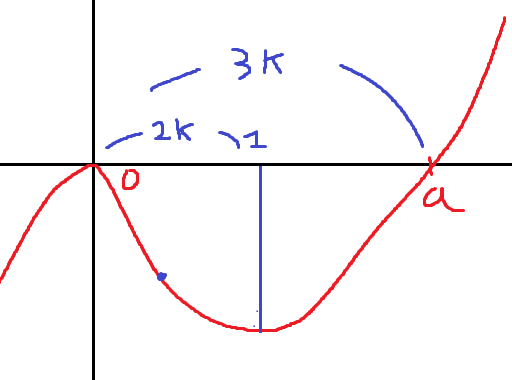 비율관계를 다시 한 번 이용해줍니다. 3k = a이므로 극솟값의 x좌표는 2k가 되며, 2k = 1이어야합니다.