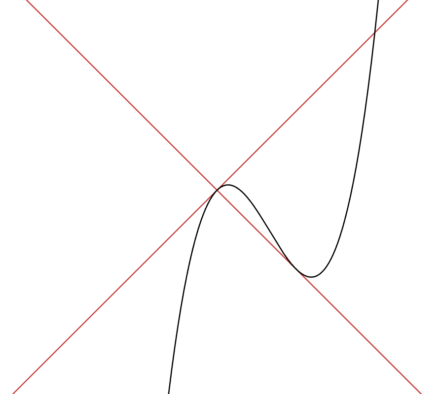 함수 f(x)를 보면 x와 -x라는 두 개의 직선에 각각 접하는 것을 볼 수 있습니다.
