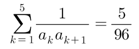 $$\sum_{n=1}^{5}\frac{1}{a_na_{n+1}}=\frac{1}{d}\left ( \frac{1}{a_n}-\frac{1}{a_{n+1}} \right )$$