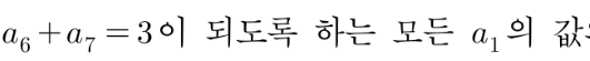 즉 두 자연수 $a_6+a_7$을 만족시키는 방법은 $a_6=2$, $a_7=1$ 혹은 $a_6=1$, $a_7=2$ 두 순서쌍 뿐입니다.