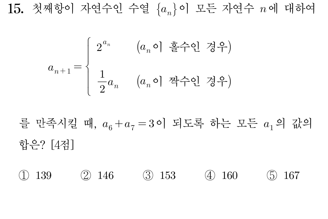 결국 우리는 $a_6$이 1 혹은 2가 될 수 있는 모든 $a_1$ 값의 합을 구하면 되는 것 입니다.