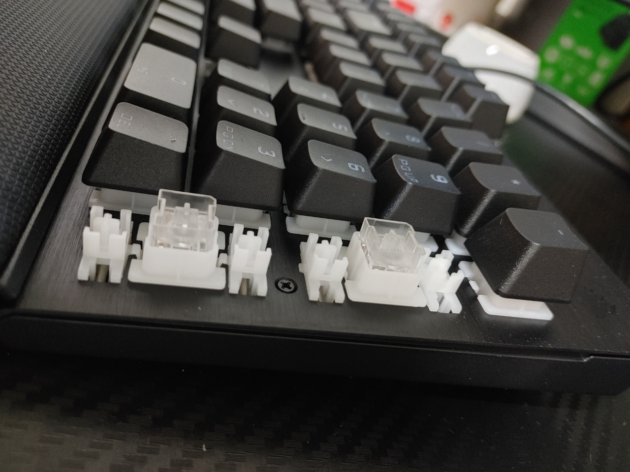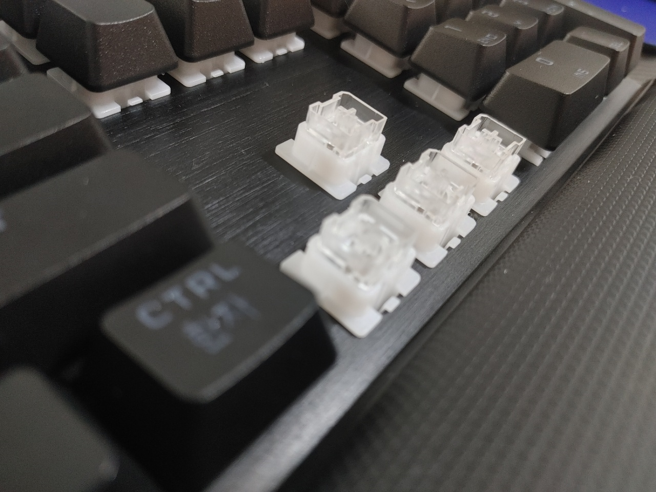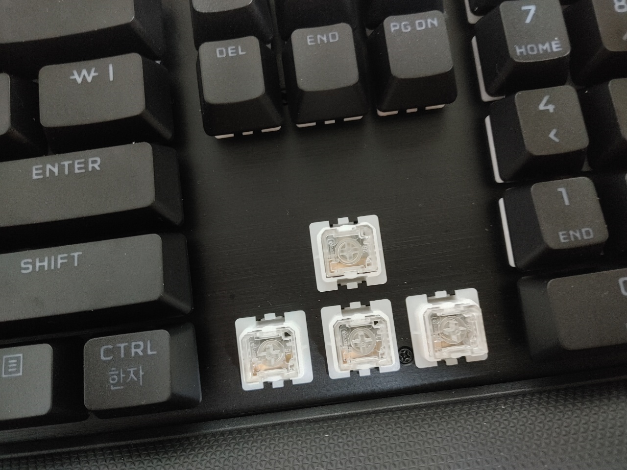 키보드의 상판을 때릴 때 마다 텅텅거리는 통울림이 크게 느껴지기에, 이 점은 키보드 자체의 문제라고 생각합니다만.. 스위치 간의 퀄리티 편차가 너무 심합니다. 몇몇 스위치는 누를 때 마다 삐걱삐걱거리는 삐걱임이 심하게 느껴져 소리는 물론이고 타건감에도 크게 나쁜 영향을 미쳤습니다.